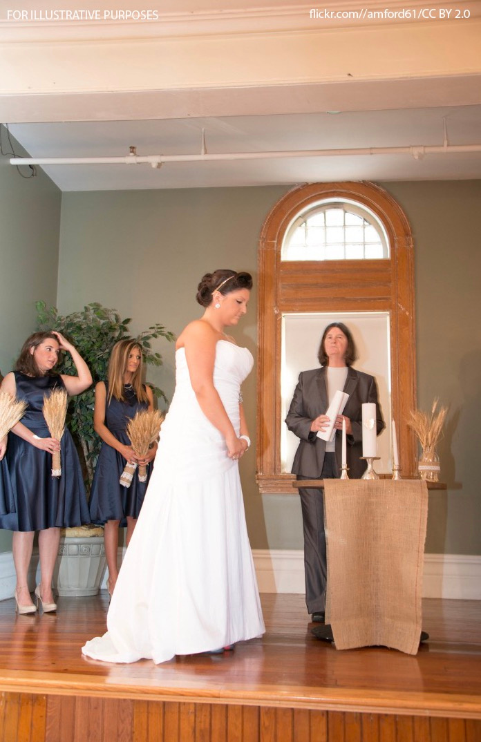 Just as the priest was about to ask us to exchange our vows, our photographer, Mark, a professional with a sterling reputation, suddenly shouted, “Stop!”
