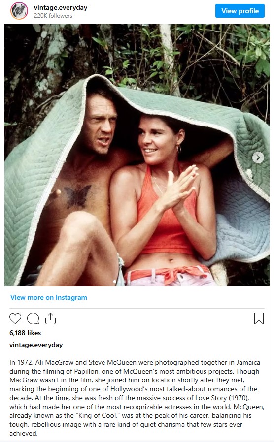 Which brings us back to that famous image from the Papillon set in Jamaica — the photograph that, on the surface, seems to capture nothing more complicated than two extraordinarily attractive people enjoying themselves in a beautiful location.